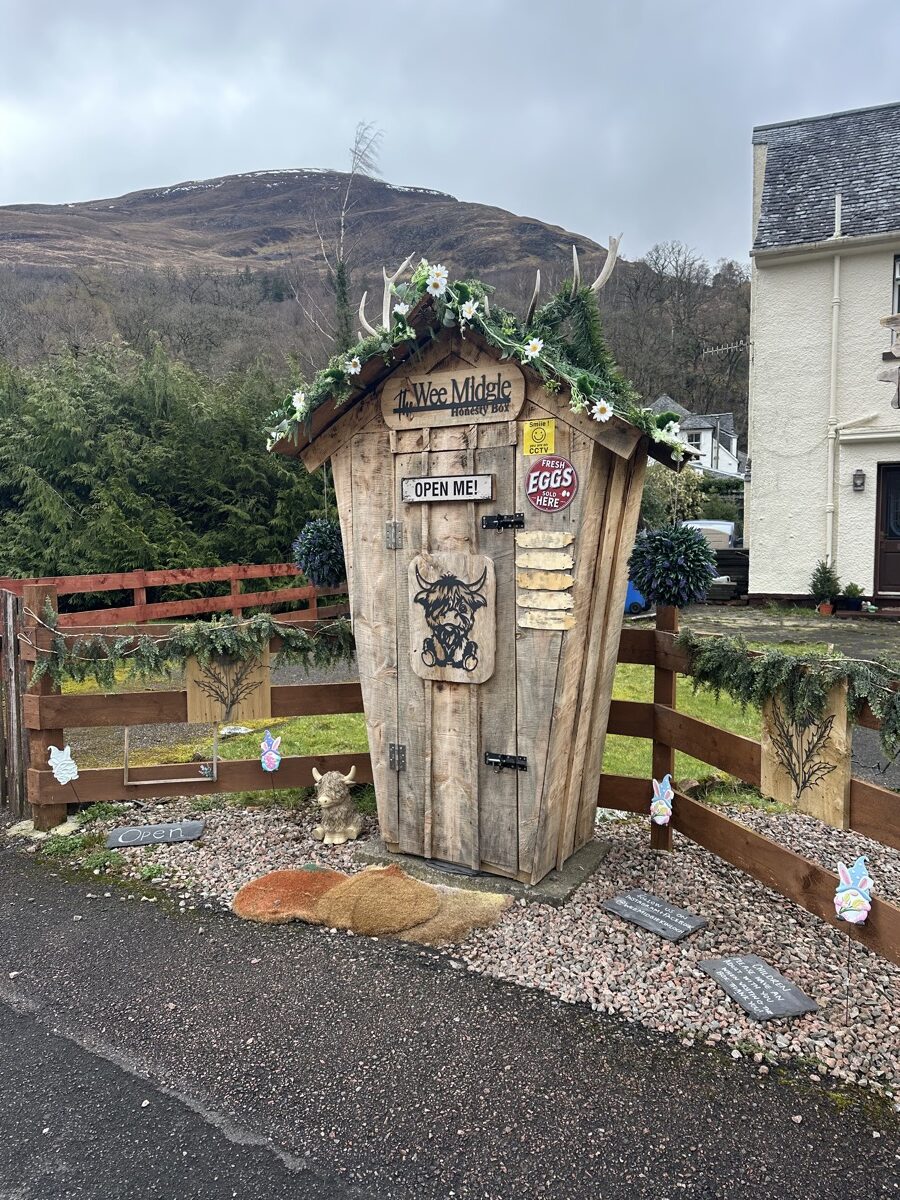At Kingshouse I used the public toilets and then went to check out the hiker inn. It was closed. I went around to the main hotel, which was fancy and I felt out of place. I asked the receptionist about breakfast and was turned away for not having a reservation. They wouldn’t offer anything at all. A croissant and a coffee to go would have been perfect, but the answer was no. It was the only place on the entire trip where I had an experience like that. Every other stop had been welcoming without hesitation. In fairness, it was my own fault for not having a reservation. If I did it again I would stop at the ski resort cafe on the way down. Do not make the same mistake I did.