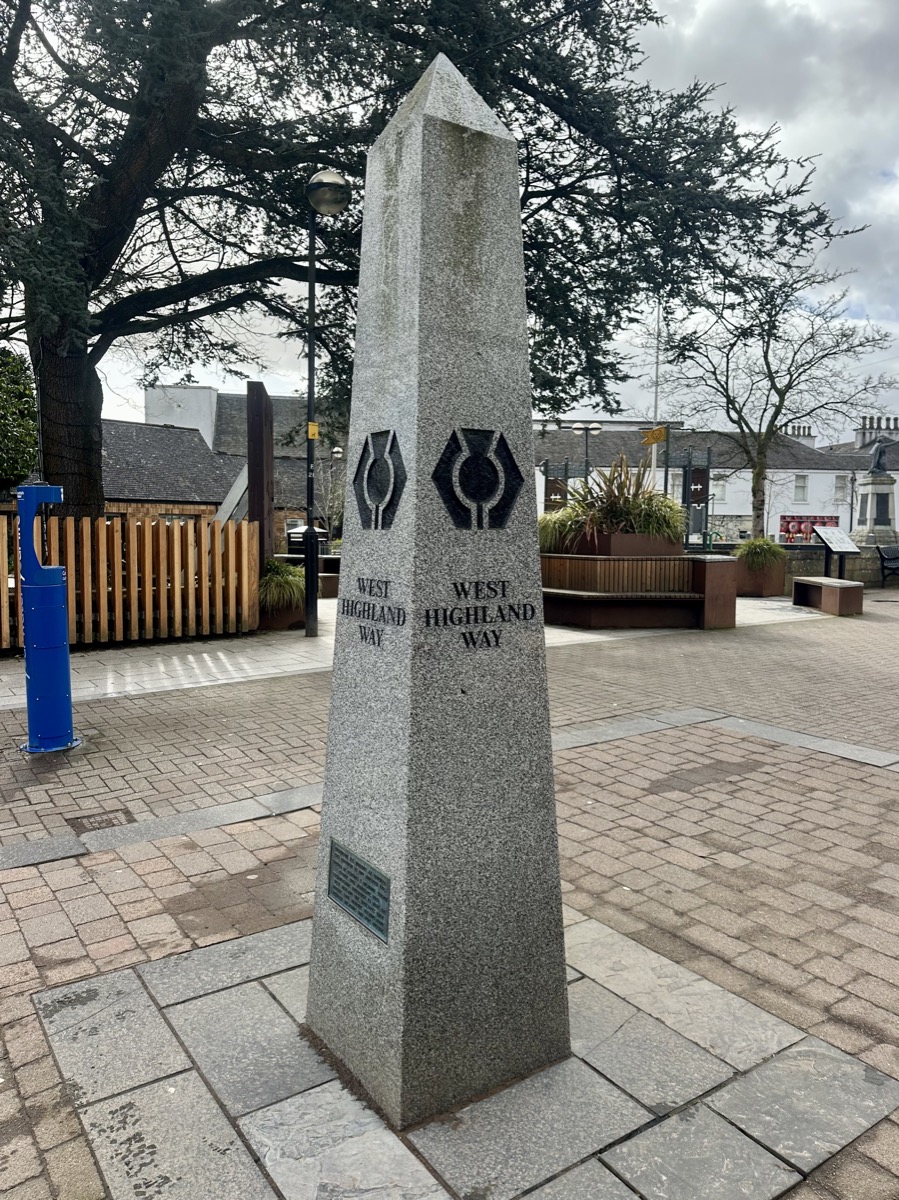 Getting to the beginning of the West Highland Way turned out to be incredibly convenient. I flew into Glasgow, hopped on a bus to Queen Street Station, and then transferred to a train that took me directly to Milngavie. Eager to begin, I hadn’t really considered the places to stop in Milngavie before setting off. At the station, I grabbed a coffee, but two minutes later I regretted it as I passed by the Honey Bee Bakery. It was on my list of must stops, so I picked up a scone and started walking towards the official start of the West Highland Way.