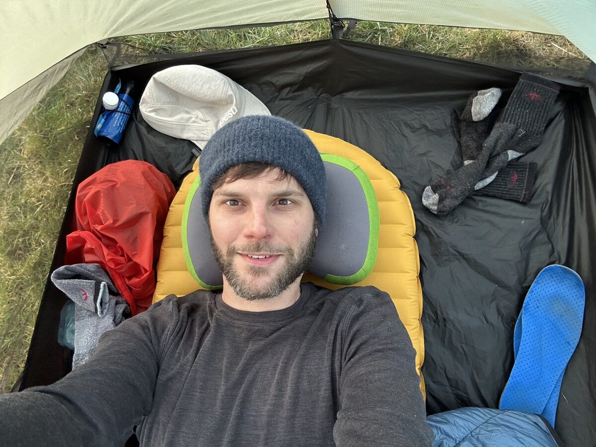 Throughout the night, storms rolled in and out almost like clockwork. Every hour or so the wind picked up, then rain, then sleet, followed by a period of calm. The Tarptent Rainbow handled it without any issues, but I was glad I had picked up a set of MSR Ground Hog stakes before the trip. They are a bit longer than standard stakes and grabbed the soft soil well. I checked the radar during a calm window and decided to pack up before the next storm moved in. I’d rather walk in the rain than pack up in it.